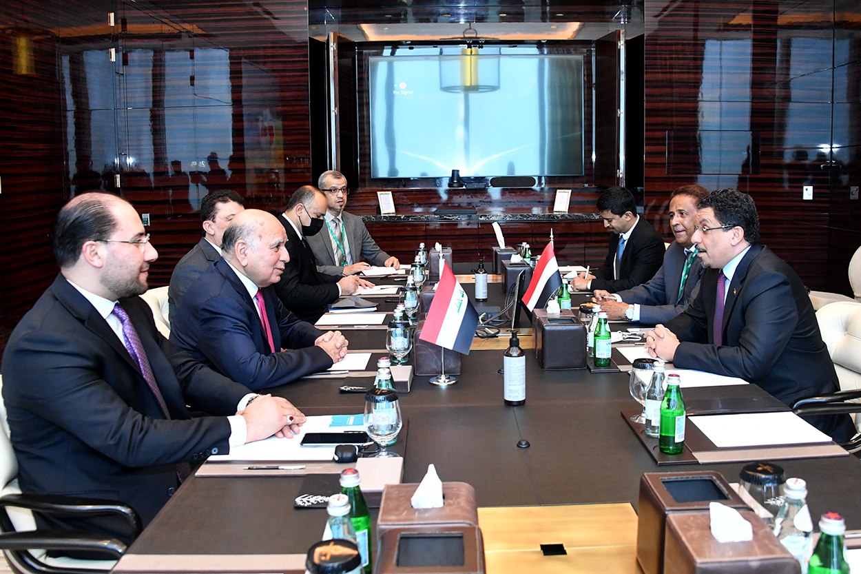 بحث وزير الخارجيّة فؤاد حسين، الجمعة، مع نظيره اليمني عوض بن مبارك، العلاقات الثنائيّة بين البلدين، وذلك في سياق أعمال قِمّة الأمن الإقليميّ.