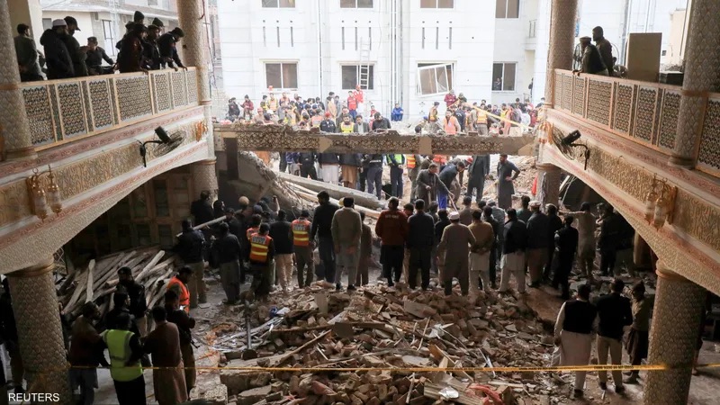 وقالت الشرطة الباكستانية إن سقف المسجد في منطقة هنغو انهار على المصلين جراء الانفجار، الذي وقع أثناء صلاة الجمعة.