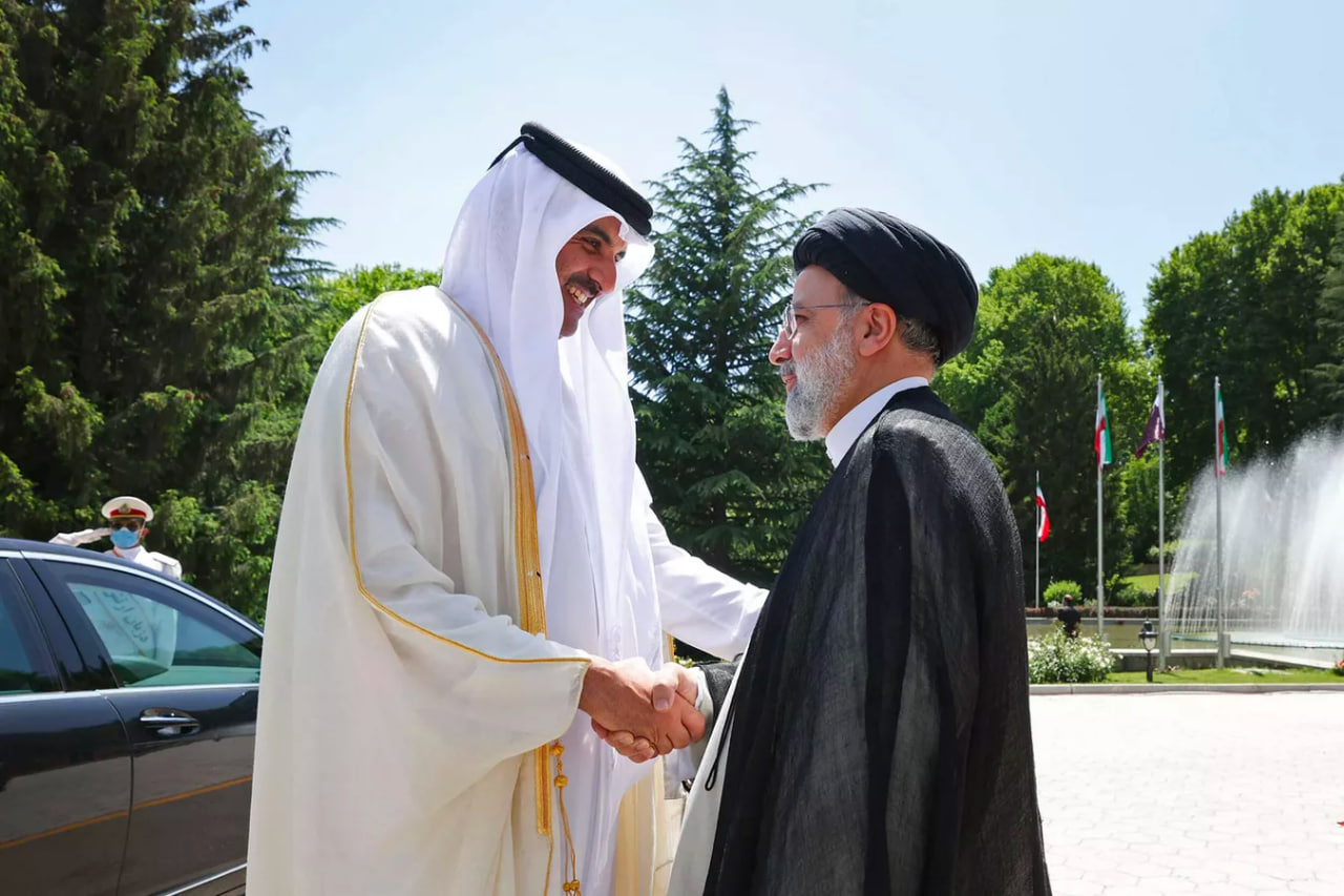 أمير قطر، الشيخ تميم بن حمد آل ثاني، يصافح الرئيس الإيراني، إبراهيم رئيسي، في العاصمة الإيرانية طهران، 12 مايو/ أيار 2022 - سبوتنيك عربي, 1920, 14.10.2023