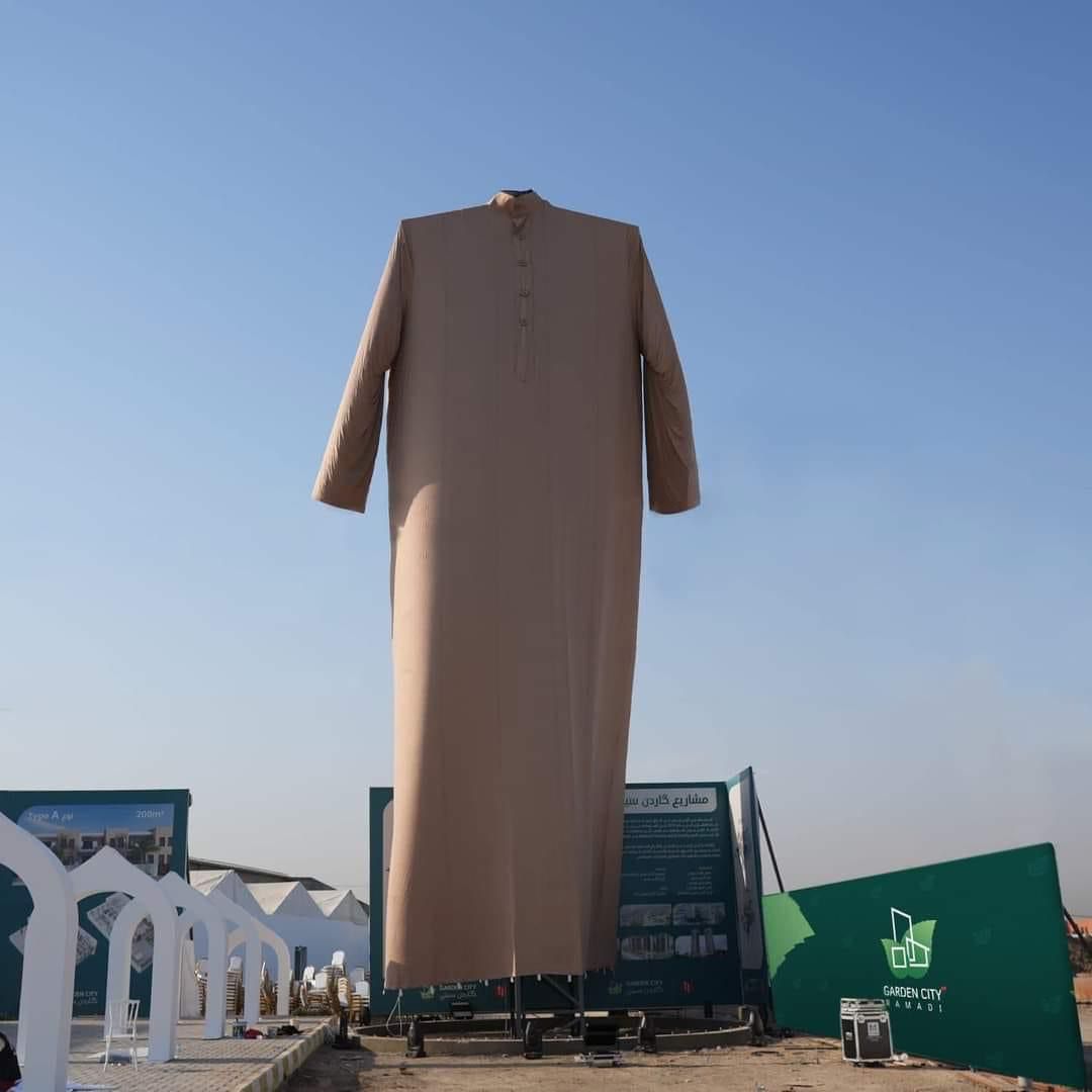 ويلفت الى اننا "اخترنا الدشداشة بهدف تسليط الضوء والاعتزاز بالثقافة والزي العربي ولنثبت من خلالها للعالم أنّ مدن العراق تتطور وفيها حركة إعمار، والثوب تم نصبه أمام مجمع سكني".