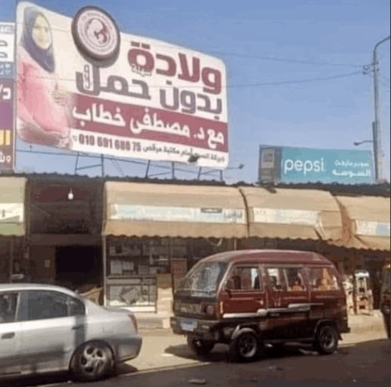 تسببت لافتة دعائية لطبيب نساء في مصر، بضجة كبيرة في مواقع التواصل الاجتماعي والشارع المصري، حيث حملت اللافتة عبارة "ولادة بدون حمل مع الطبيب مصطفى خطاب".