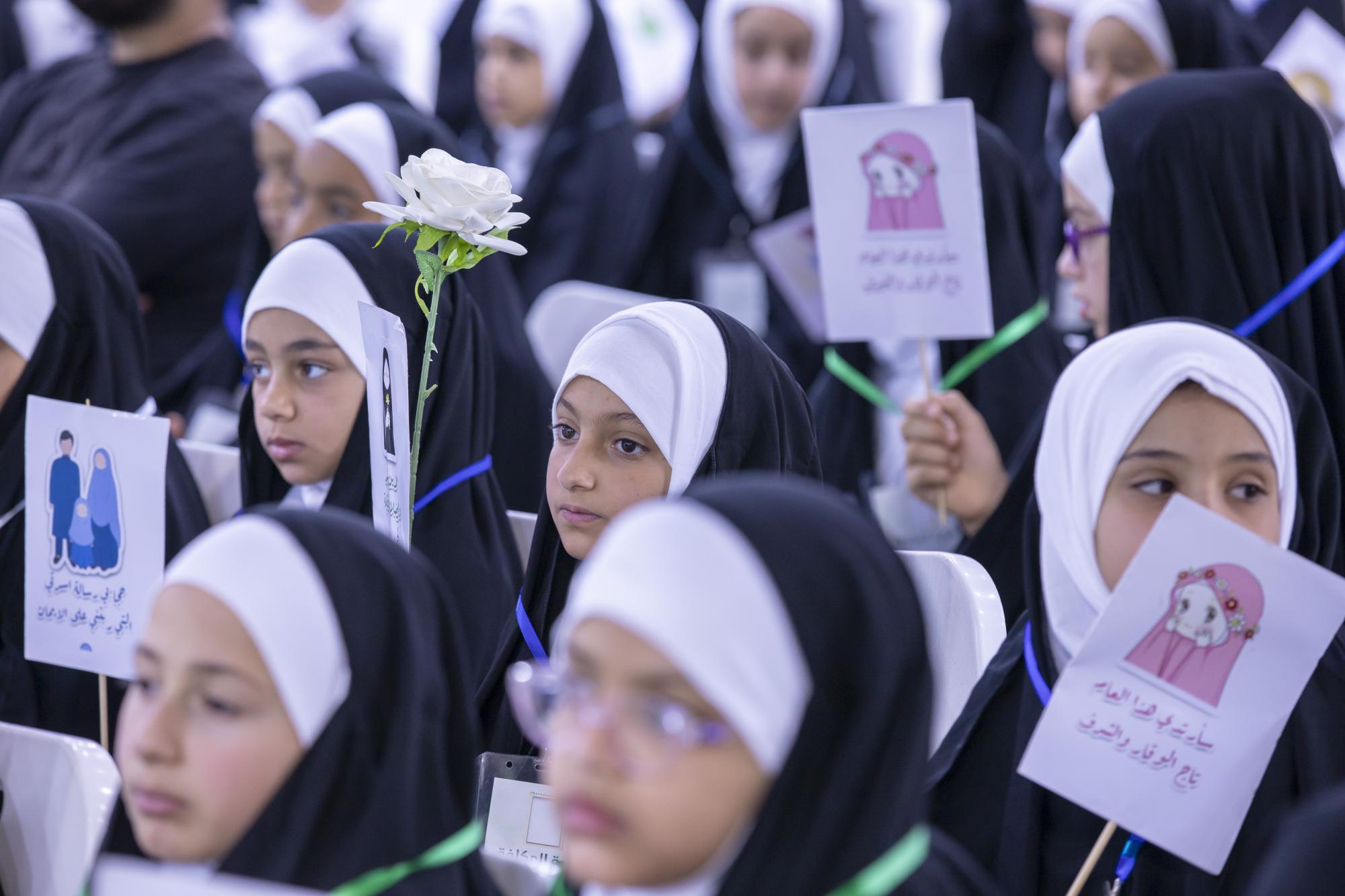 وأكدت أن الحفل أقيم بمشاركة "أكثر من (300) طالبة من طالبات مدارس القضاء التابعة للمديرية العامة للتربية في محافظة كربلاء المقدسة".