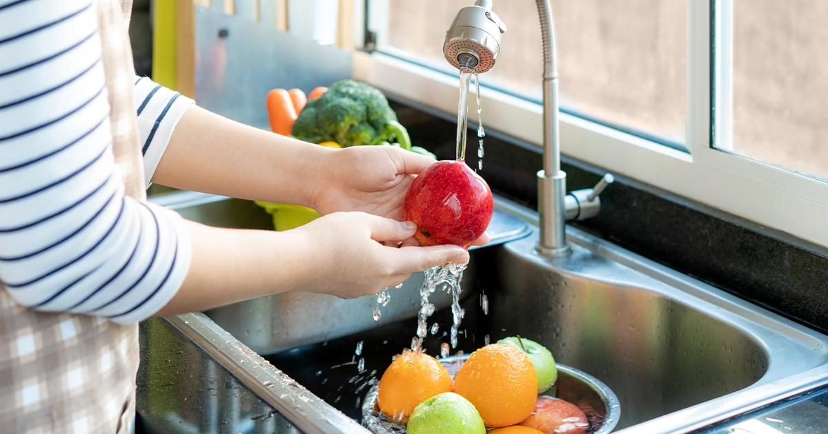 ويشير باحثون في مجال علم سلامة الأغذية من جامعة ولاية كولورادو، إلى أنه من الأفضل غسل الفواكه والخضروات بما فيها الورقية بالماء الجاري لأن الماء فعال في إزالة المبيدات الحشرية والبكتيريا والأوساخ والآفات مثل المنظفات الكيميائية.