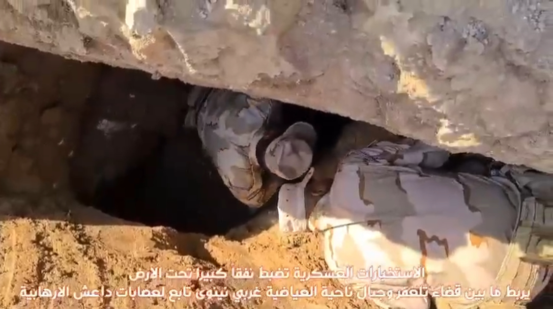 الاستخبارات العسكرية تضبط نفقاً كبيراً تحت الأرض يربط ما بين قضاء تلعفر وجبال ناحية العياضية غربي نينوى تابع لعصابات داعش الإرهابية