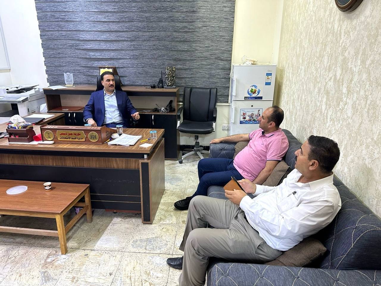 وقوفا على توفير المستلزمات اللوجستية الضرورية داخل المراكز الامتحانية والاطلاع على أسباب عدم تجهيز بعضها بالشكل الامثل، تفقد معالي وزير التربية الدكتور إبراهيم نامس الجبوري أعمال اللجان الإمتحانية الفرعية في المديريات العامة للتربيات الثلاث جانب الرصافة والتقى المديرين العامين فيها باحثا معهم المناشدات الواردة من قبل اولياء امور الطلبة الذين عانوا من عدم توفير الخدمات،اليوم، مشددا على ضرورة المتابعة الميدانية اليومية للقاعات الامتحانية طوال هذه الفترة وسيتعرض للمحاسبة كل من يثبت تقصيره تجاه العملية الامتحانية.