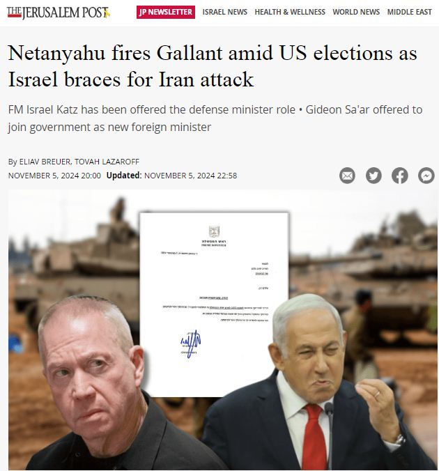 وأشارت إلى أن "غالانت كان الركيزة المستقرة للعلاقات (الإسرائيلية ـ الأمريكية)، لكنه اختلف بشدة مع نتنياهو بشأن القضايا العسكرية والسياسية الحاسمة، بما في ذلك صفقة الرهائن وتجنيد المتدينين المتطرفين في الجيش"، مضيفة بأنه "قد طرده وسط الانتخابات الأمريكية عندما كانت إدارة بايدن مشتتة بسبب الانتخابات الرئاسية".