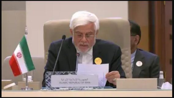دعا نائب الرئيس الإيراني محمد عارف خلال كلمة بلاده في القمة العربية الإسلامية غير العادية المنعقدة في الرياض، إلى موقف حازم ينهي الحرب على غزّة ولبنان.