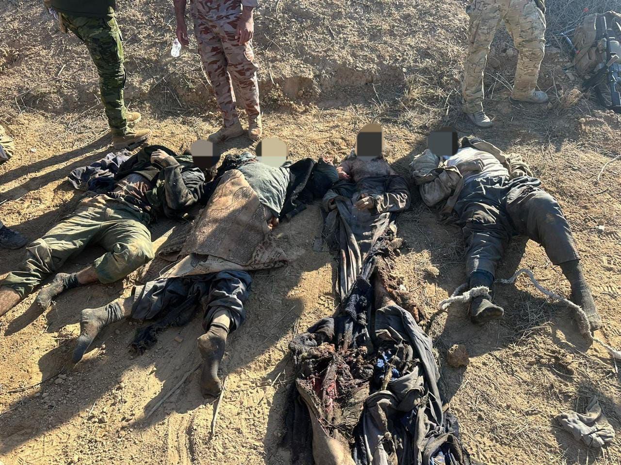 وتابع، "خرجت بالساعة 500 من فجر اليوم السبت، قوة من الغيارى في الفوج الأول اللواء 63 قوات خاصة وكتيبة استطلاع الفرقة 11 التابعة لمديرية الاستخبارات العسكرية لتفتيش مكان الضربة، إذ عملت على فتح جوالة لقوة الواجب من قبل الفرقة 11، وبالساعة 900 تم العثور على (5) جثث للإرهابيين داخل مضافة نتيجة الإصابة الدقيقة لصقور الجو البواسل، كما تم العثور على (4)بنادق وحزامين ناسفين وجرى تدميرهما تحت السيطرة، فضلاً عن (6)رمانات يدوية مختلفة وأعتدة ومعدات اتصالات ومواد لوجستية أخرى داخل هذه المضافة.