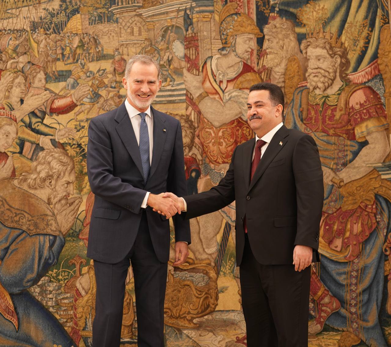 التقى رئيس مجلس الوزراء محمد شياع السوداني، اليوم الخميس، العاهل الإسباني الملك فيليب السادس، في القصر الملكي بمدريد.