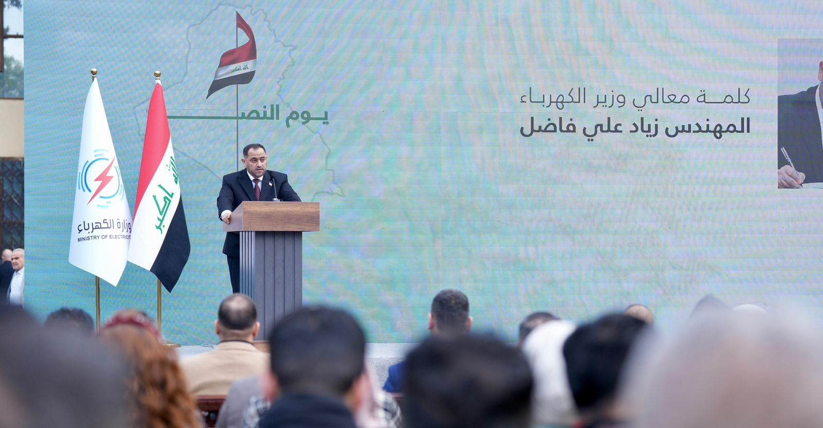 جاء ذلك خلال احتفالية مركزية بمناسبة الذكرى السابعة ليوم النصر وتابعها ( كلمة )، والتي أقامتها وزارة الكهرباء، برعاية وحضور الوزير زياد علي فاضل، وبمشاركة وكلاء الوزارة والمديرين العموميين وجمع غفير من منتسبي الوزارة.