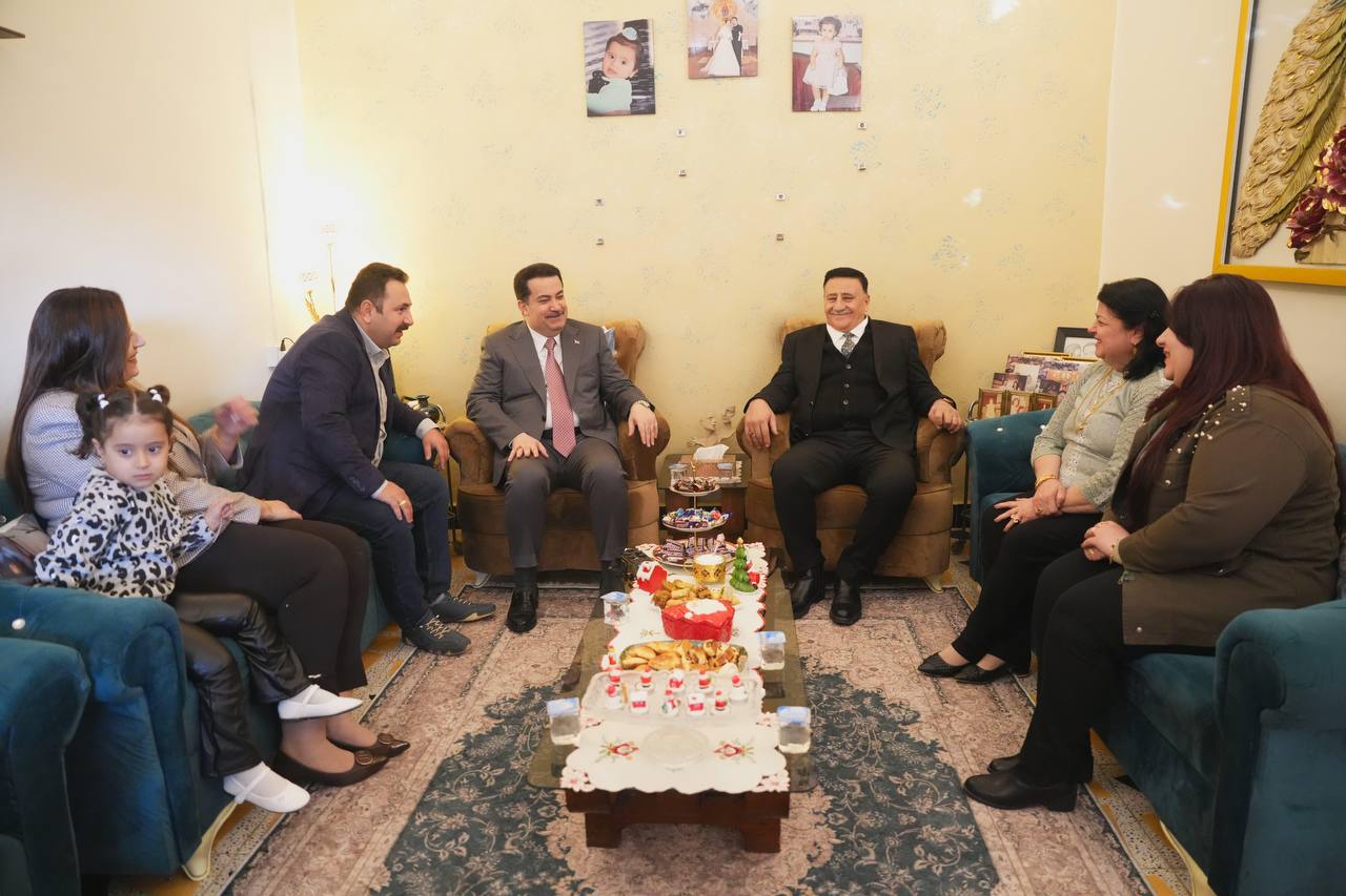 أجرى رئيس الوزراء محمد شياع السوداني، صباح اليوم الأربعاء، زيارة لعائلة عراقية من الطيف المسيحي الكريم بالعاصمة بغداد، وشاركهم الاحتفال العائلي بمناسبة ذكرى ميلاد السيد المسيح (عليه السلام).