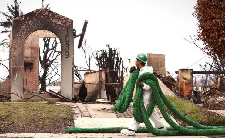 وتابعت "يستمر التحذير من حصول الانهيارات الطينية حتى بعد ظهر اليوم، لكن مسؤولي لوس أنجلوس يحذرون أيضًا من خطر طويل الأمد من الرماد الذي يمثل مزيجًا سامًا من السيارات المحروقة والإلكترونيات والبطاريات ومواد البناء والدهانات والأثاث وغيرها من الأدوات المنزلية" التي تحتوي على "المبيدات الحشرية والأسبستوس والبلاستيك والرصاص".