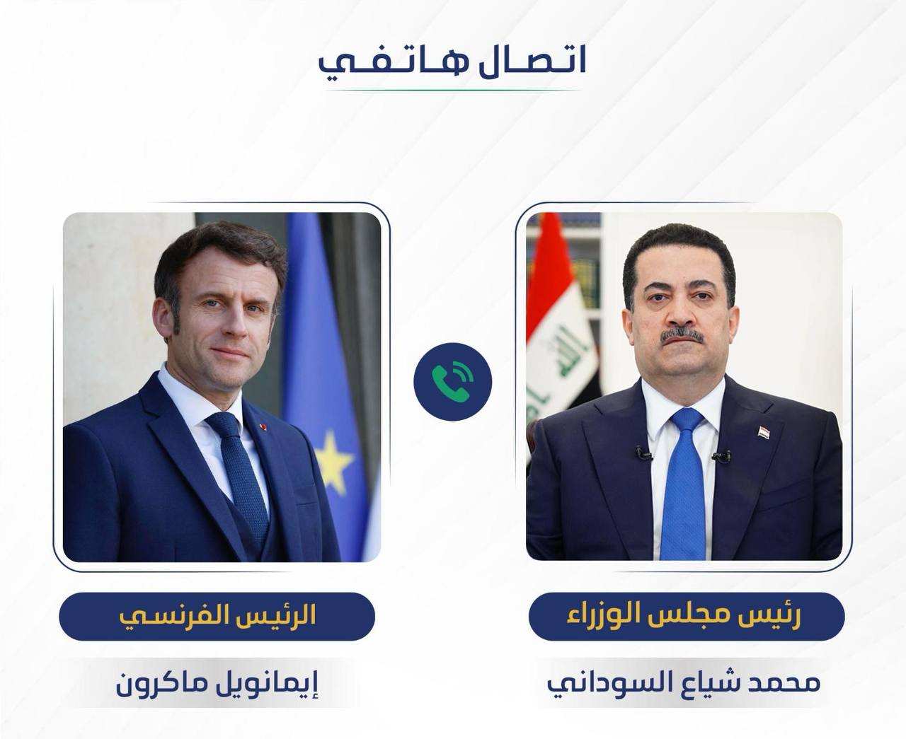 بحث رئيس الوزراء محمد شياع السوداني، اليوم السبت، مع الرئيس الفرنسي إيمانويل ماكرون، في اتصال هاتفي مجمل الملفات والقضايا ذات الاهتمام المشترك.
