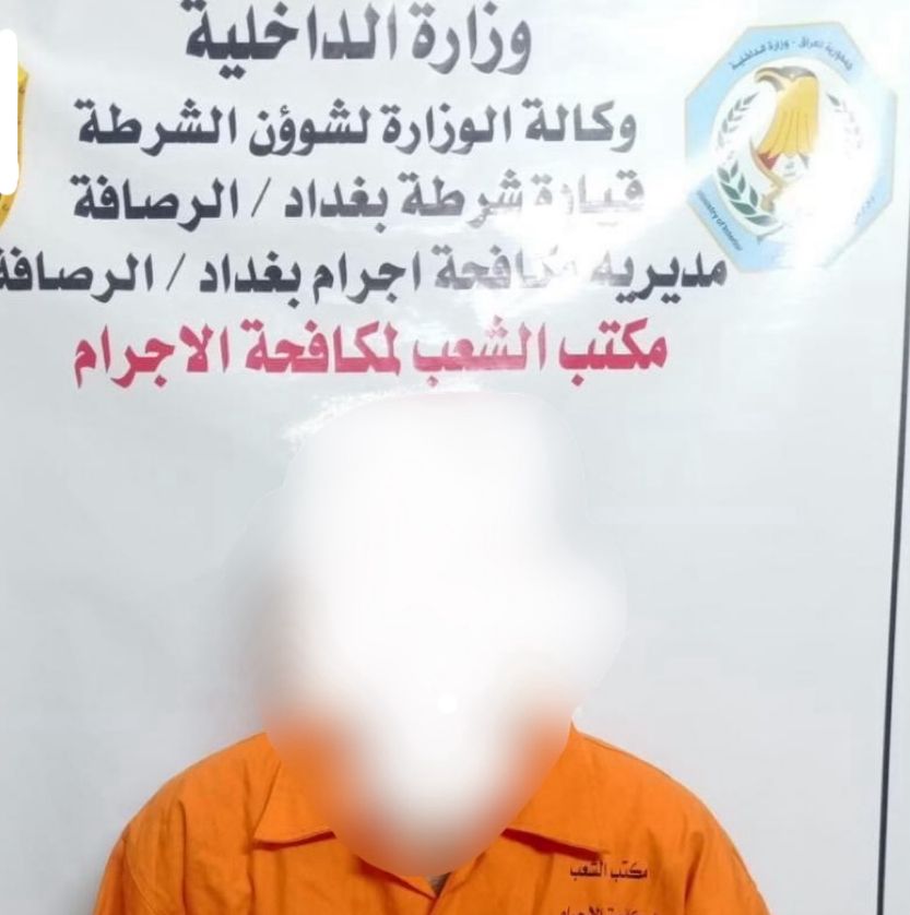 وقالت القيادة في بيان تلقاه "كلمة الإخباري": أنه "بأشراف ومتابعة السيد قائد شرطة بغداد الرصافة ، تمكنت مفارز مكتب مكافحة اجرام الشعب من القاء القبض على متهم مطلوب وفق احكام المادة القانونية (421) عملية القبض تمت بعد ورود معلومات تفيد بتواجد المتهم ضمن قاطع المسؤولية ليتم تشكيل فريق عمل والتوجه إلى مكان تواجده والقبض عليه".