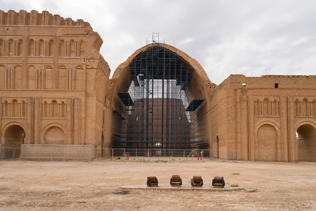 ونشر الناشط والصحفي الفرنسي لويس سيبريان على حسابه بمنصفة (X)، صوراً حديثة للطاق تظهر أعمال إعادة ترميم الطاق، الذي أكبر طاق (قوس) مبني بالطابوق على مستوى العالم.