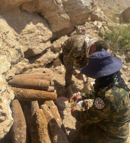 وتابعت بأن "القوة تمكنت من ضبط كدس عتاد من مخلفات التنظيم الإرهابي في منطقة الدولاب بالمحافظة"، مبينة أن الكدس "يضم (20) قذيفة نمساوية و(7) قنابر نوع "جهنم" و(15) عبوة ناسفة، حيث تم جمع الكدس وتفجيره بطريقة آمنة".