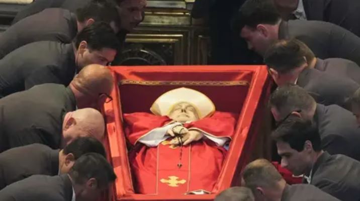 وسيُسجى جثمان البابا الراحل فرنسيس في تابوته بالكاتدرائية حتى موعد تشييع جثمانه، ودفنه يوم السبت المقبل.