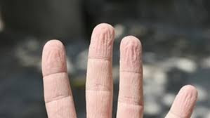 ويسحب هذا الانكماش الجلد نحو الداخل، مكوّنا التجاعيد المؤقتة التي تظهر خصوصا على أطراف الأصابع.