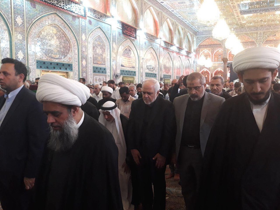نشرت وكالات ومواقع خبرية عراقية صوراً لوزير الخارجية الإيراني محمد جواد ظريف وهو يؤدي مراسم زيارة الإمام الحسين في كربلاء.