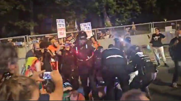 أظهرت مقاطع مصوّرة تداولها ناشطون ومدوّنون على نطاق واسع، حملة الاعتقالات التي شنتها الشرطة الإسرائيلية على المستوطنين، خلال تظاهرة طالبوا بإنهاء الحرب على غزة.