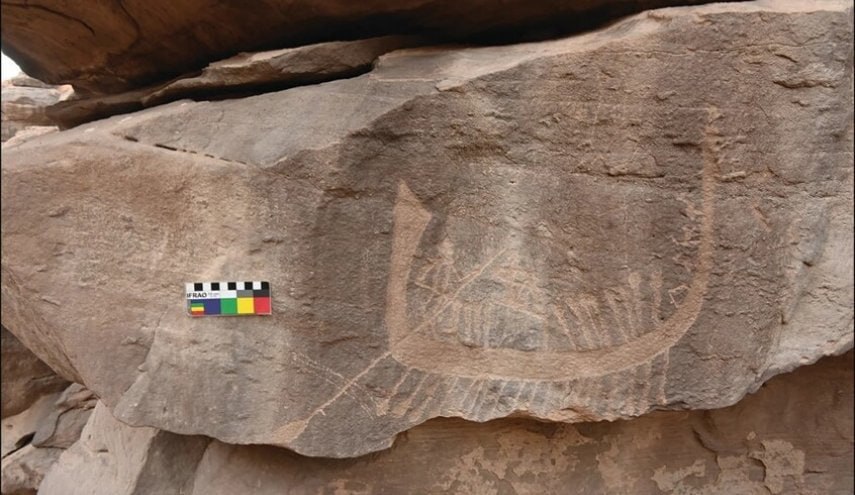 ويصور النقش، الذي نُشرت تفاصيله في مجلة "أنتيكويتي" العلمية المتخصصة، شخصية ذات ملامح ملكية تجلس على متن مركب مزخرف، بينما يقوم خمسة أشخاص بسحبه بواسطة حبال، في حين يتولى شخص سادس توجيهه بمجداف.