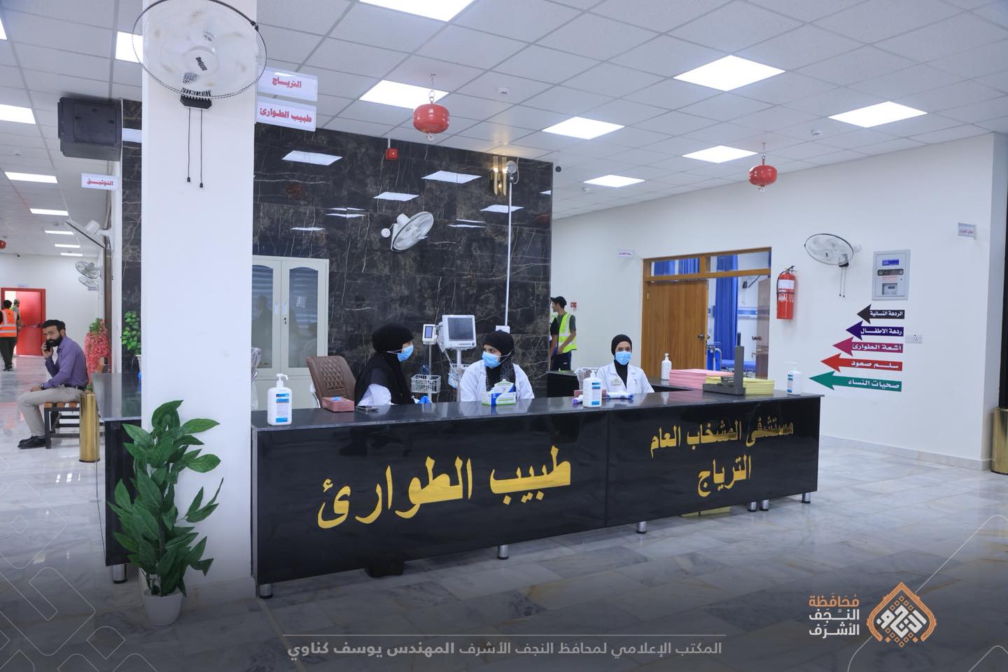 وقال محافظ النجف يوسف گناوي في بيان تلقاه كلمة الإخباري: إن "الافتتاح شمل في الطابق الأرضي (ردهات طوارئ رجال ونساء وأطفال و وحدة أشعة وإنعاش طوارئ)، أما الطابق الثاني فيضم (صالة عمليات طارئة وردهات رقود جراحية)".