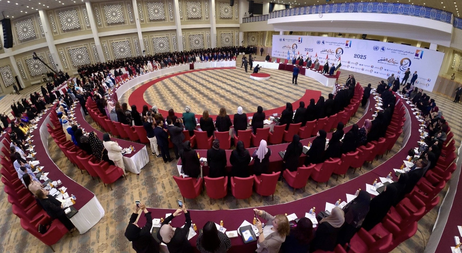 وشدد الحكيم في كلمته التي تابعها كلمة الإخباري على "ضرورة سن تشريعات تكفل حماية المرأة من العنف الأسري والابتزاز الإلكتروني والتحرش في أماكن العمل، مع تخصيص موازنات حكومية لدعم النساء المعنفات والمهمشات والمعيلات".