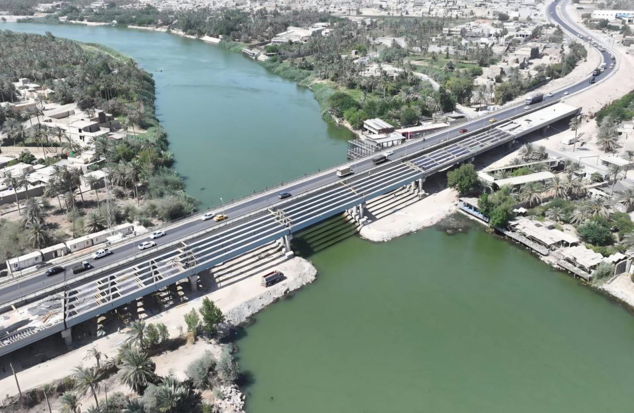 وأوضح بأن "المشروع ينفّذ بإشراف دائرة الطرق والجسور، وبلغت نسبة إنجازه الحالية (64%)، فيما يبلغ الطول الكلي للجسر (1700 متر) وبعرض (12 متراً)".