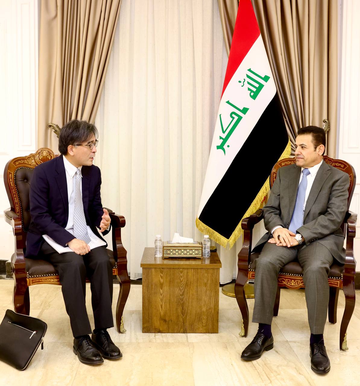 بحث مستشار الأمن القومي، قاسم الأعرجي، اليوم الاثنين، مع السفير الياباني في بغداد، آكيرا إندو، دعم الحكومة اليابانية للحكومة العراقية في مجال الاستشارة وتطوير القدرات البشرية والتنمية الاقتصادية.