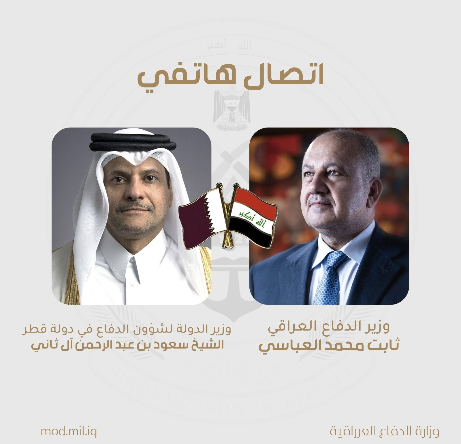وأضاف وزير الدفاع خلال الاتصال "تضامن العراق ووقوفه إلى جانب قطر في مواجهة التحديات"، مشدداً على "عمق الروابط الأخوية التي تجمع الشعبين الشقيقين، وأهمية وحدة الصف العربي في تعزيز الأمن والاستقرار".
