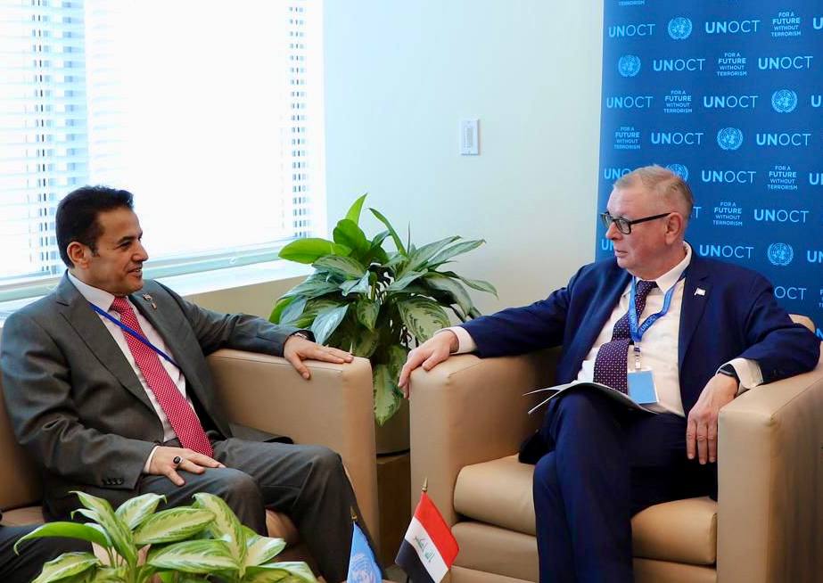 بحث مستشار الأمن القومي، قاسم الأعرجي في نيويورك، مع وكيل الأمين العام للأمم المتحدة لمكافحة الإرهاب الكسندر زويف التعاون المشترك في مكافحة الإرهاب.