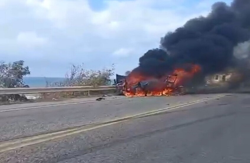 وبحسب مصادر ميدانية ومقاطع فيديو متداولة، فإن الاستهداف أدى إلى اشتعال السيارة بالكامل وتناثر شظاياها على الطريق الساحلي.