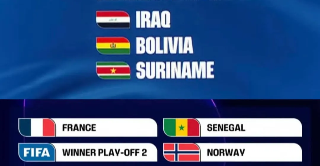 أسفرت قرعة بطولة كأس العالم 2026، التي احتضنها مركز “جون كينيدي للفنون” في العاصمة الأميركية واشنطن مساء اليوم الجمعة، عن وقوع منتخبنا الوطني في المجموعة التاسعة إلى جانب فرنسا والسنغال والنرويج، في حال فوزه بالملحق العالمي على بوليفيا أو سورينام.