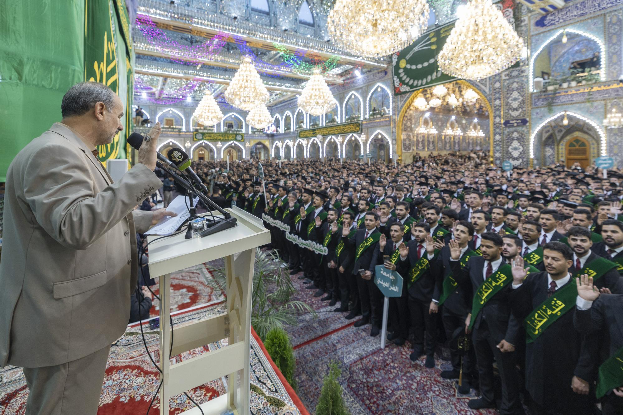 وبينت أن "الحفل تضمن أداء قسم التخرج الذي أقسم فيه الطلبة داخل المرقد الطاهر، وقرأه الدكتور عباس الدده الموسوي، عضو مجلس إدارة العتبة، وجاء فيه: