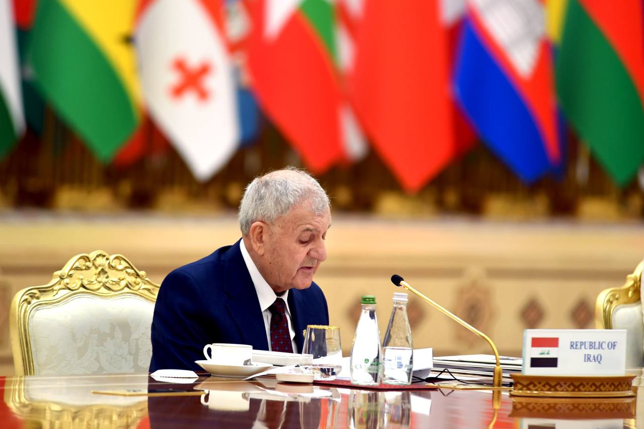 وأضاف فخامته في كلمة ألقاها خلال منتدى العام الدولي للسلام والثقة في العاصمة التركمانستانية عشق اباد بمناسبة الذكرى الثلاثين لحياد تركمانستان والتي تلقاها كلمة الإخباري، أن "العراق يسعى الى ترسيخ علاقات متوازنة وفاعلة مع محيطه الإقليمي والدولي، تستند إلى مبادئ السلام والتعاون ونبذ الحروب والصراعات، ولا سيما في منطقة الشرق الأوسط".