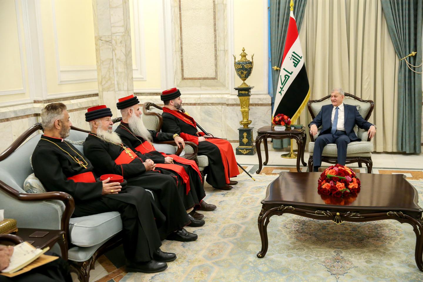 وتطرق رئيس الجمهورية إلى "أهمية ترسيخ الأمن والاستقرار في البلاد الذي يعد عاملا مهما قي تقديم الخدمات وتأهيل البنى التحتية"، مشيراً إلى أن "هناك حملة في مدينة الموصل لتأهيل الكنائس وإعادتها إلى سابق عهدها".