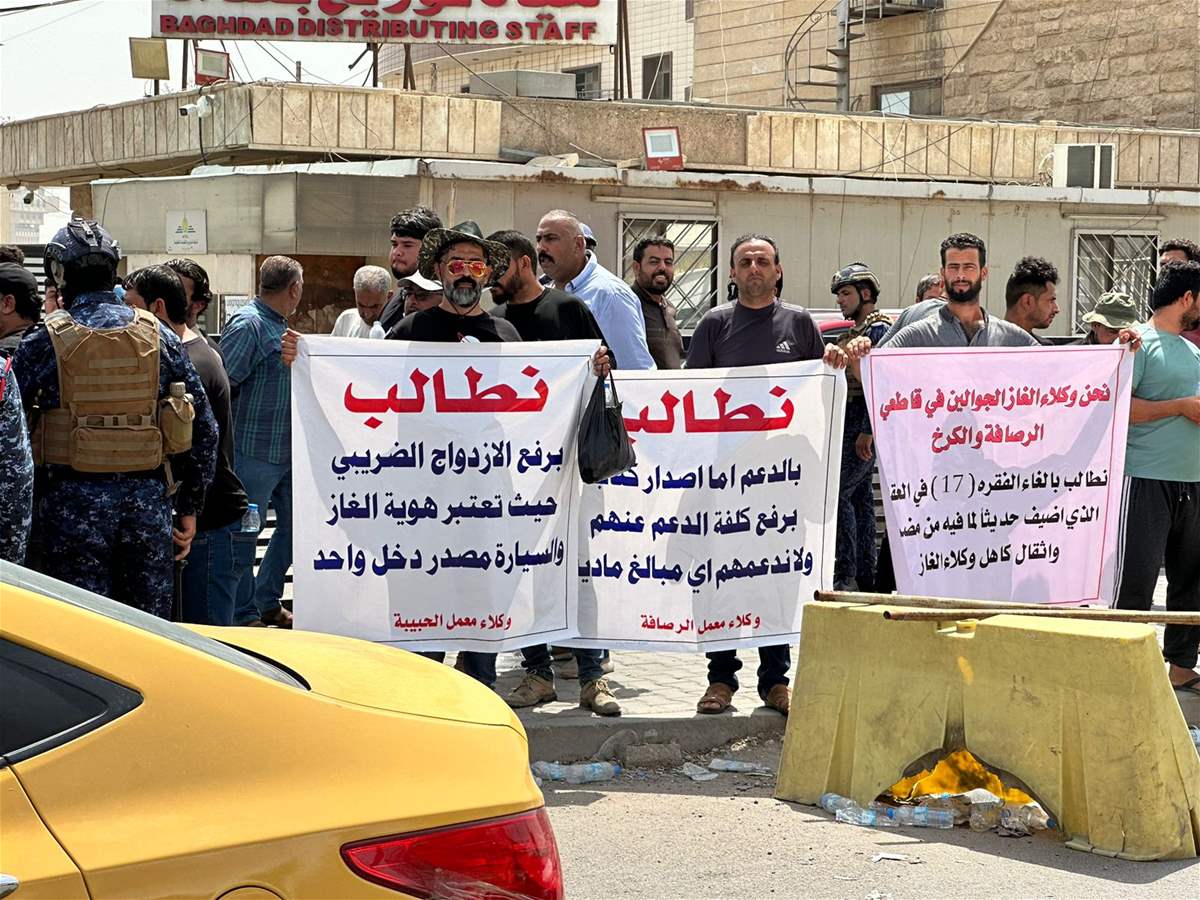 تظاهر عدد من وكلاء الغاز الجوّالين من بغداد ومحافظات أخرى، الأحد، أمام مقر هيأة التوزيع التابعة لشركة توزيع المنتجات النفطية بوزارة النفط في الباب الشرقي، على خلفية فرض ضرائب على رخصة بيع الغاز بأثر رجعي.
