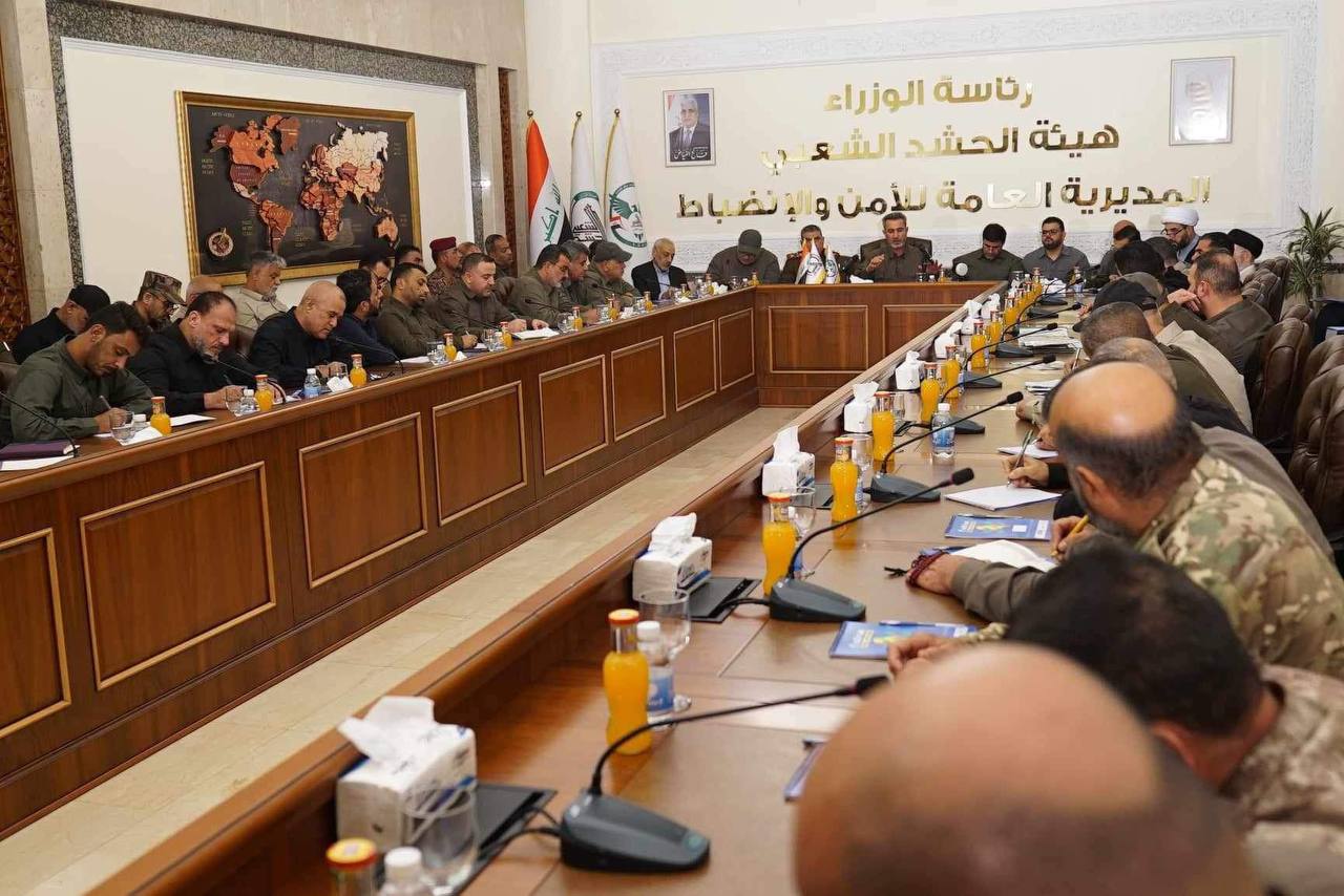 عقدت هيئة الحشد الشعبي، اجتماعا موسعا برئاسة رئيس أركان الهيئة عبد العزيز المحمداوي وحضور الأمين العام وأمين السر وقادة العمليات وآمري الألوية والتشكيلات ومدراء الصنوف الساندة في الهيئة، حيث وجّه المحمداوي برفع حالة الإنذار القصوى استعدادا للتعامل مع أي طارئ خلال الأيام المقبلة.