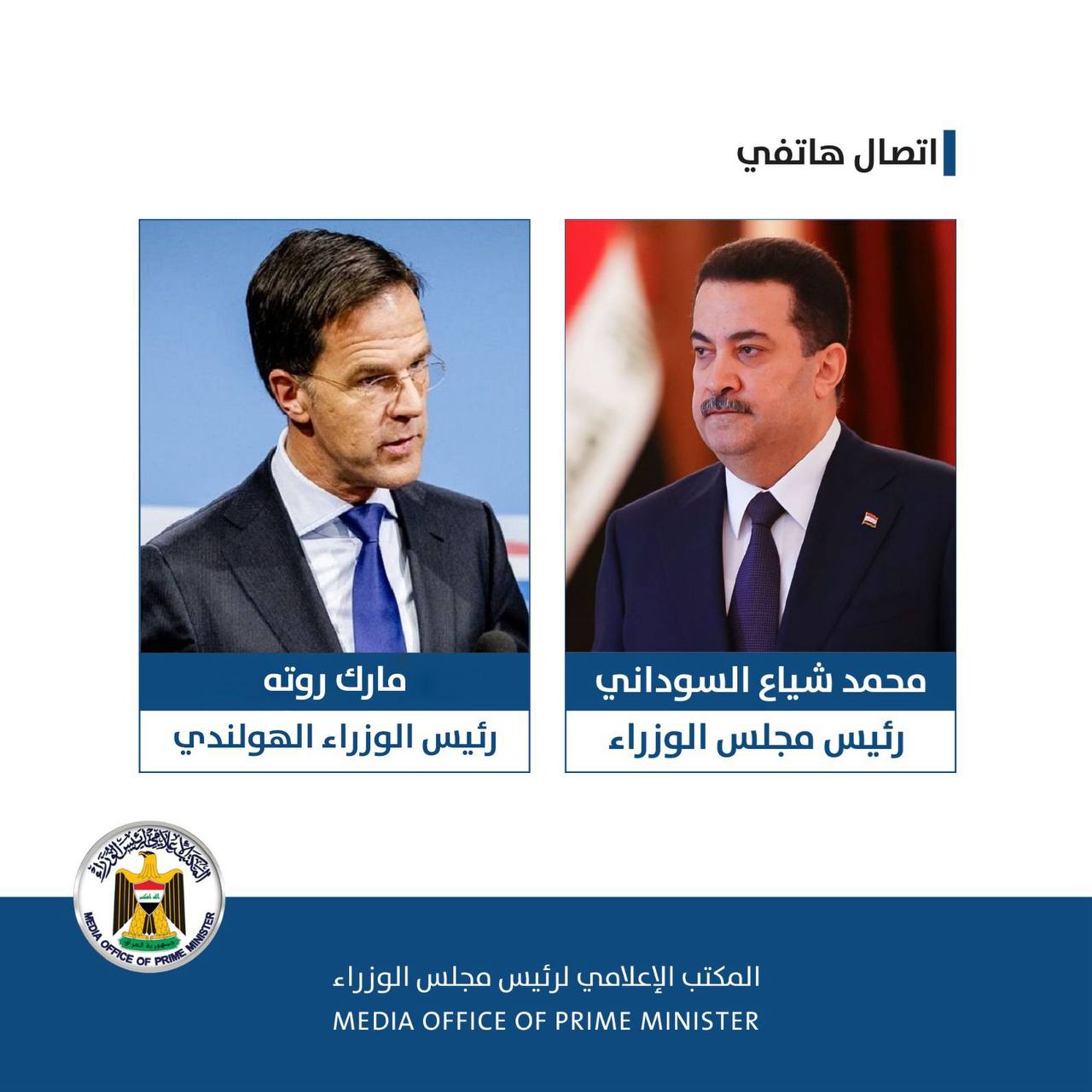 رئيس مجلس الوزراء السيد محمد شياع السوداني يتلقى اتصالاً هاتفياً من رئيس الوزراء الهولندي
