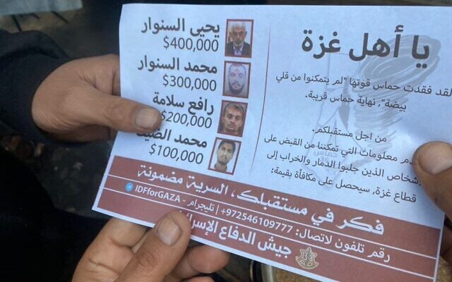 رصد الجيش الإسرائيلي كما يبدو مكافأة لمن يدلي بمعلومات عن قادة حماس، حيث أفادت تقارير أنه أسقط منشورات في قطاع غزة تعرض أموالا مقابل معلومات حول مكان قائد حماس في غزة يحيى السنوار وقادة آخرين في الحركة.