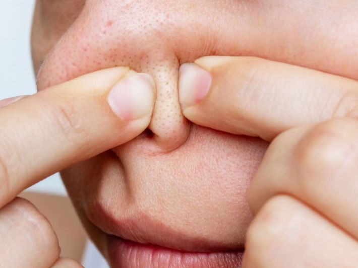 مشكلة الرؤوس السوداء، التي تظهر على شكل نقاط صغيرة فوق الأنف