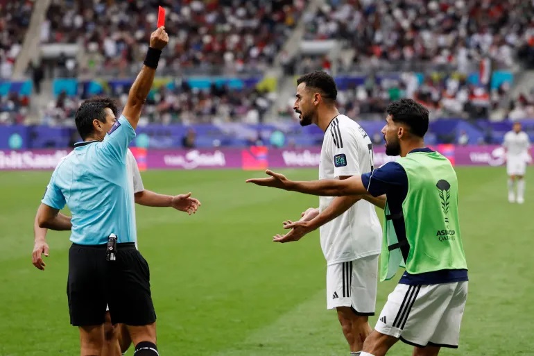 وخسر المنتخب العراقي أمس الاثنين مباراة الدور الـ16 في بطولة كأس آسيا أمام الأردن، بنتيجة 3 - 2، في مباراة شهدت طرد المهاجم أيمن الحسين، بعد احتفاله بتسجيله هدف التقدم الثاني للمنتخب العراقي في الدقيقة 76.