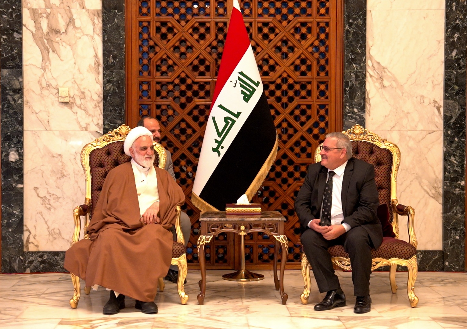 وقال إعلام القضاء العراقي في بيان تلقاه "كلمة الإخباري": إن نائب رئيس محكمة التمييز القاضي زيدون سعدون استقبل اليوم، رئيس السلطة القضائية في الجمهورية الإسلامية الإيرانية غلام حسين محسني إجئي.
