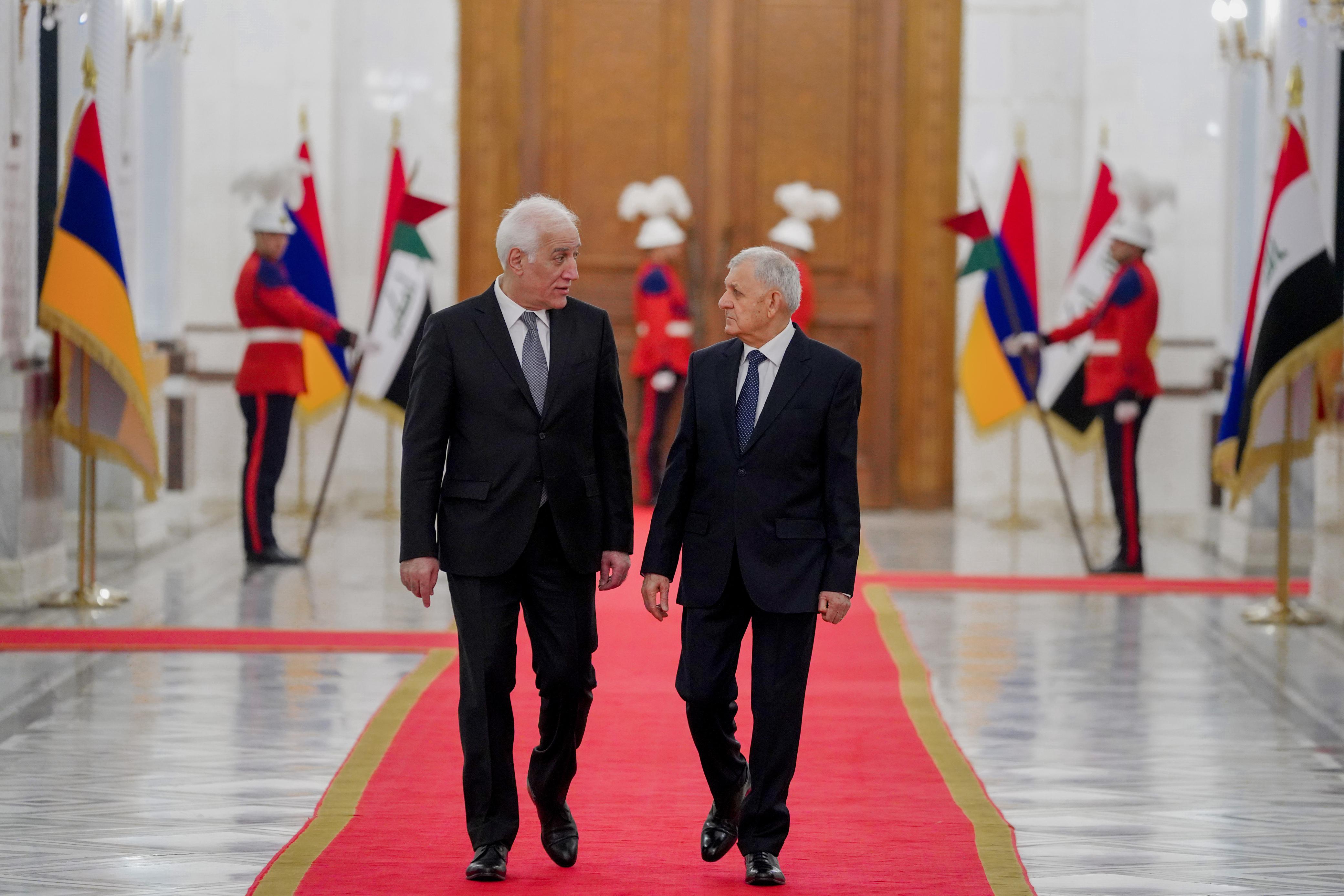استقبل رئيس الجمهورية عبد اللطيف جمال رشيد، الثلاثاء، رئيس جمهورية أرمينيا فاهاكن خاتشاتوريان، تمهيداً لإجراء مباحثات "موسعة".