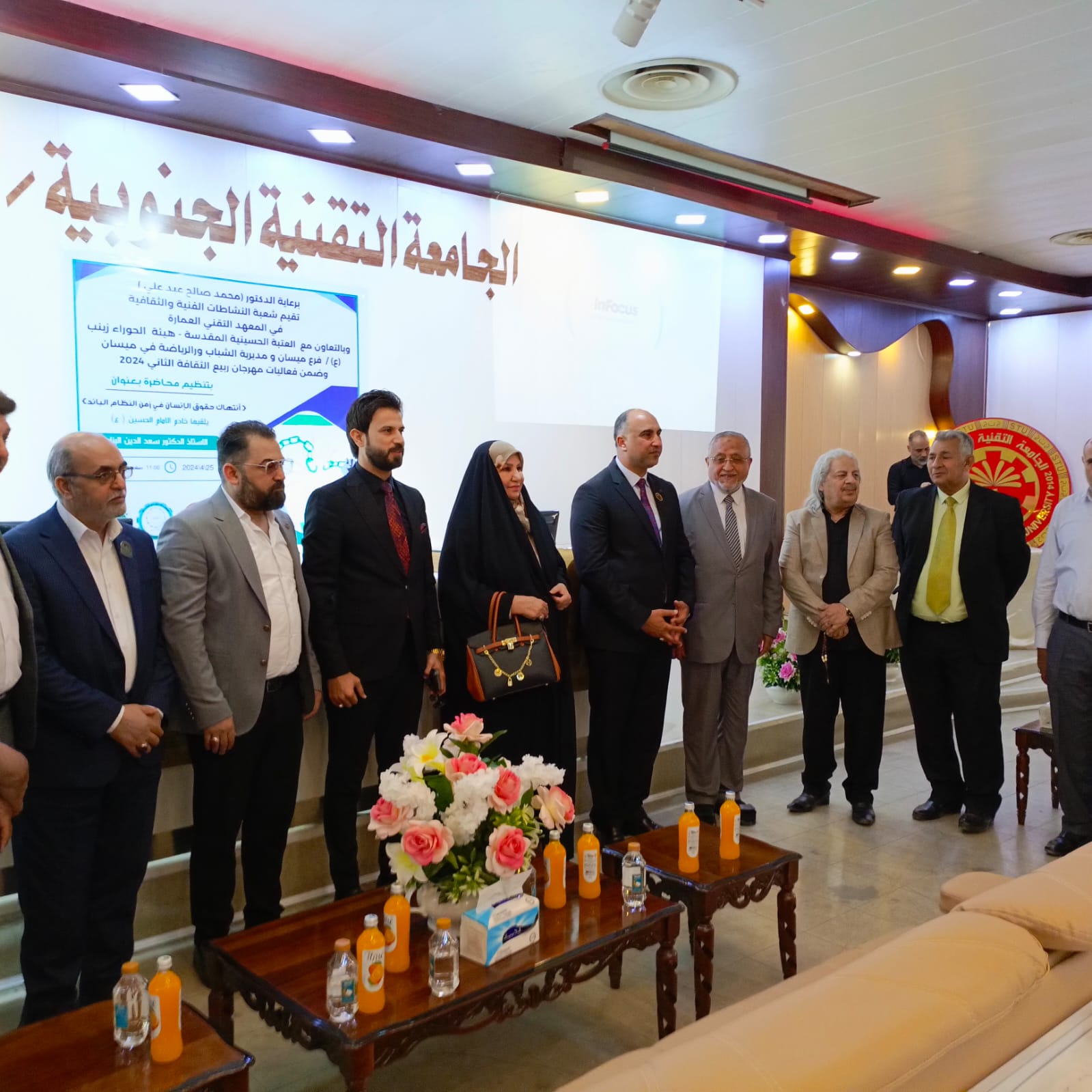 جاء ذلك عقب انتهائه من إلقاء محاضرة تحت عنوان "انتهاك حقوق الإنسان في زمن النظام السابق" التي ألقاها في المعهد التقني في محافظة ميسان.