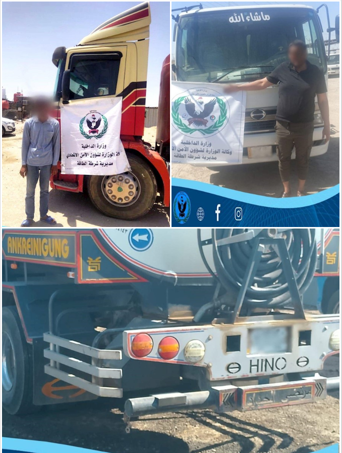 ألقت مفارز لواءي شرطة الطاقة الرابع والثامن في محافظتي بغداد والبصرة القبض على متهمين بتهريب المنتجات النفطية وضبط عجلتيهما لوجود مخالفات عدة.