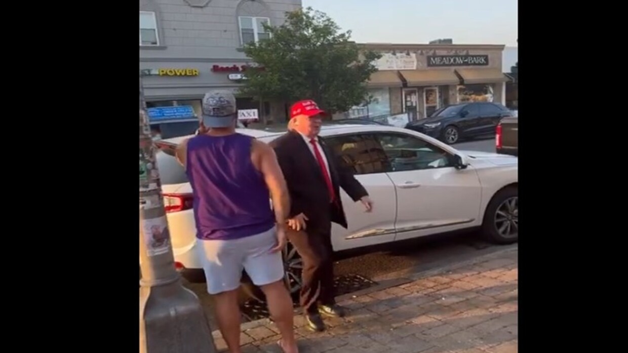 انتشر مقطع مصور عبر مواقع التواصل الاجتماعي لرجل يشبه الرئيس الأمريكي السابق دونالد ترامب وهو يتجول في شوارع لونغ بيتش ويحيي "مؤيديه".