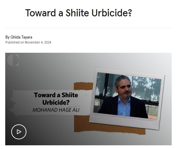 وبين بأن "مناطق شيعية مثل صور والضاحية الجنوبية والبقاع الشمالية تتعرض للقصف والتدمير الممنهج من قبل الجيش الإسرائيلي، وإذا استمرّت العمليات الإسرائيلية وفق النمط الحالي ولفترة أطول بكثير، سنرى تدميراً ممنهجاً وشاملاً على مستوى كل هذه الأرض".