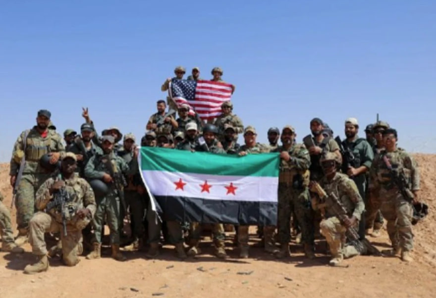 وهناك صورة أخرى تشير إلى الارتباط بين الأمريكان والمسلحين في سوريا، حيث تظهر فيها صورة مشتركة للقوات الأمريكية مع جنود من الجيش السوري الحر (المتمردين)، مما يدل على التعاون الوثيق.