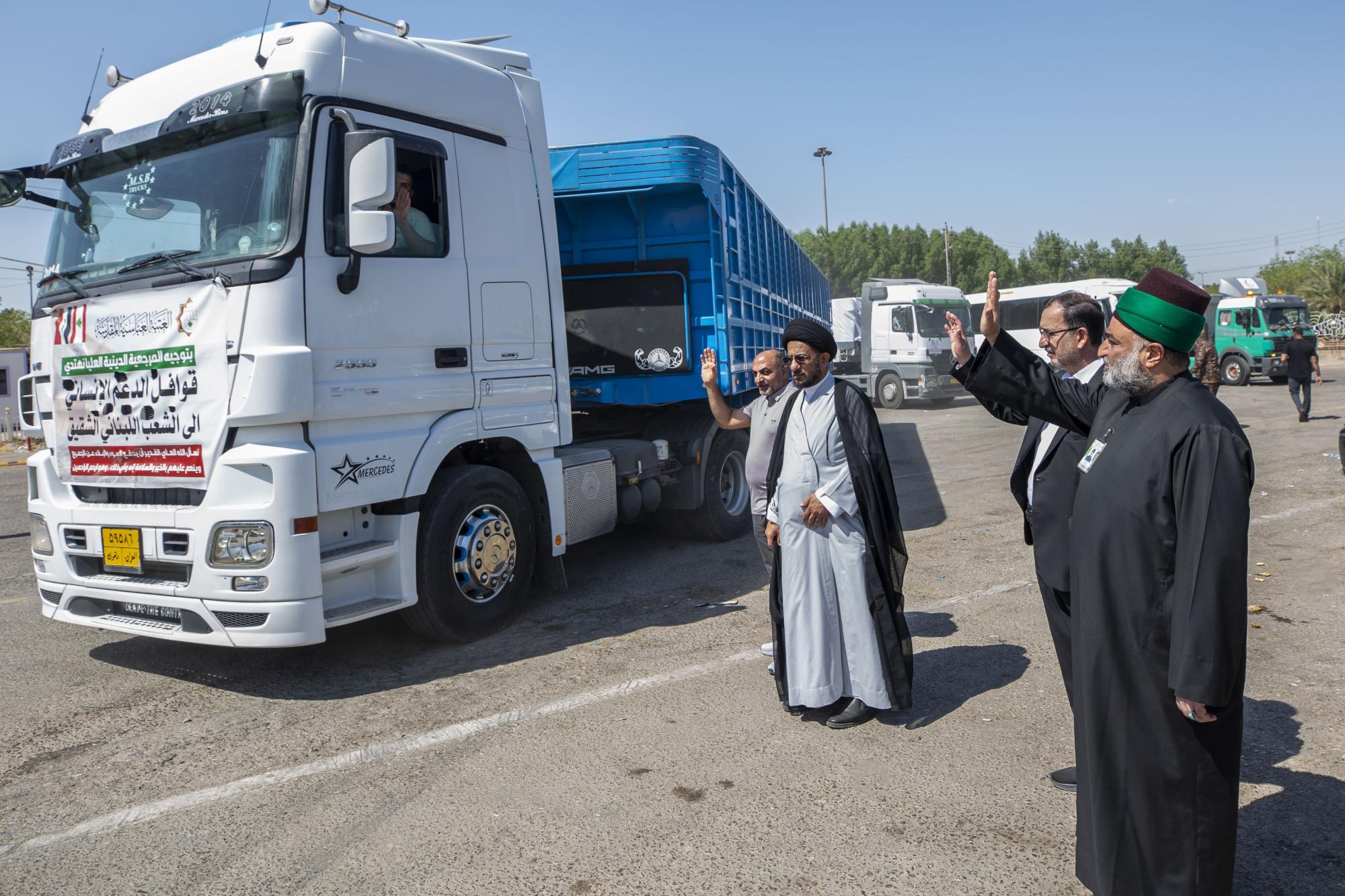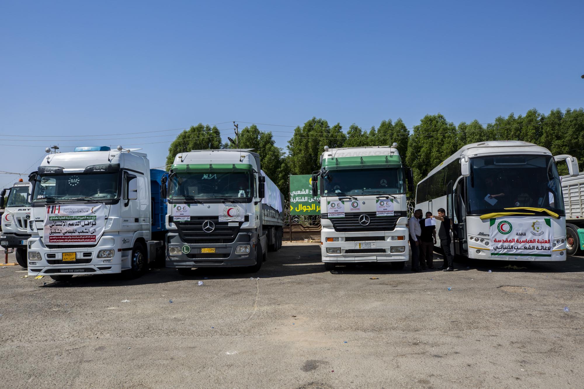 وتنطلق المساعدات الإغاثية للعتبة العباسية من مدينة كربلاء باتجاه سوريا على المعبر البري الرابط مع العراق.